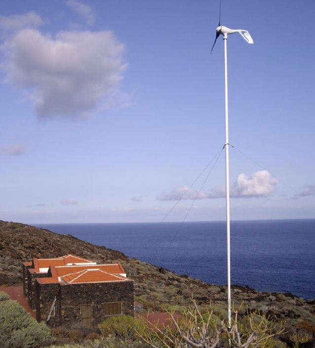 A estas alturas, a más de uno le podría parecer extraño que la casa no tenga paneles de energía fotovoltaica. Esto se debe al modelo renovable de la isla. Cuando la isla decidió generar su energía eléctrica de manera 100% renovable con la central hidro-eólica, decidimos conectarnos a la red general. Antes de esto, la casa se surtía de electricidad por medio de un aerogenerador que aprovechaba la brisa marina complementado con paneles solares.
